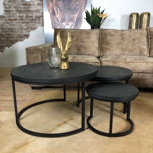 - Industriele Salontafel Set Moods 3 Delig Zwart